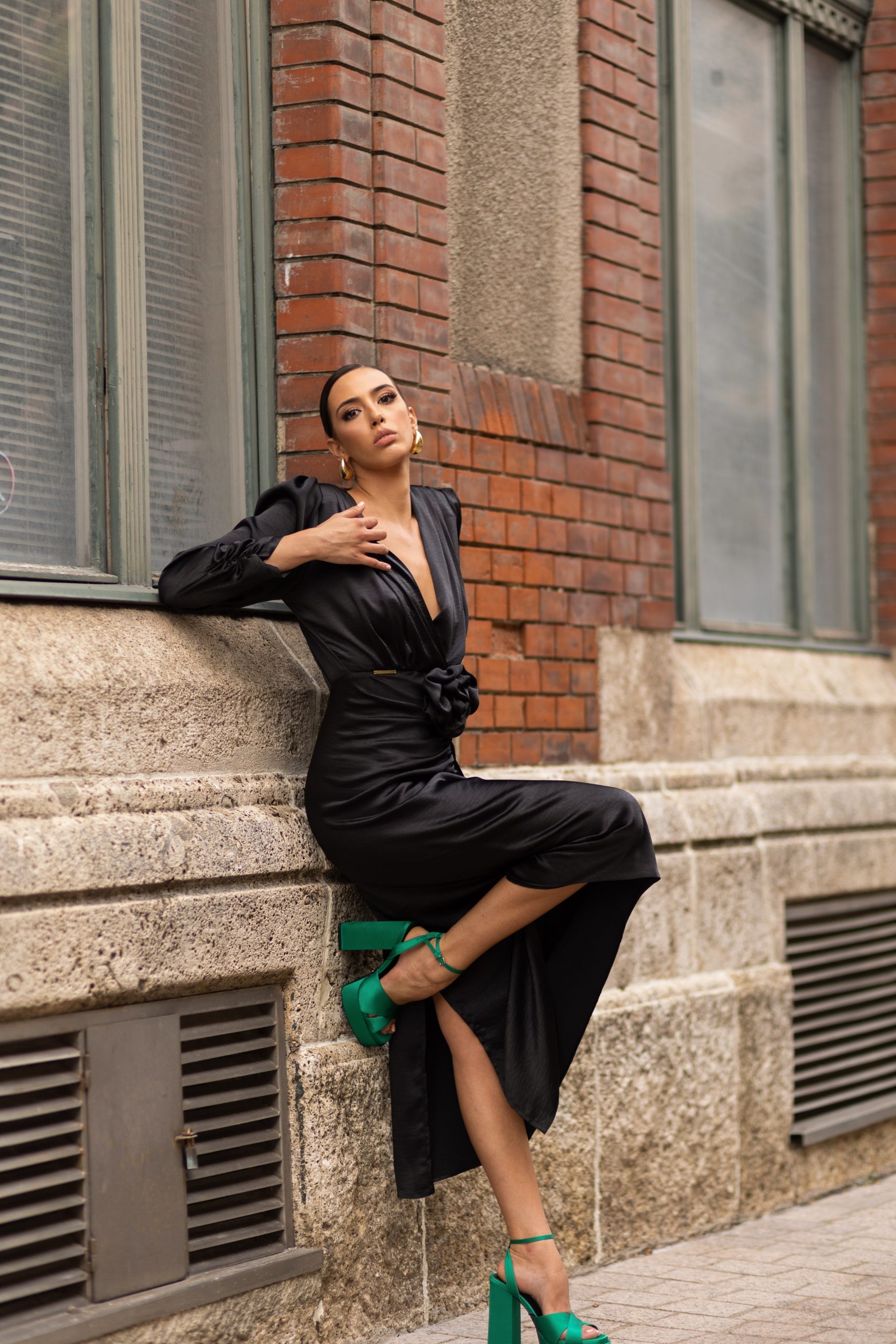 Sestra haljine Lotta Flower, za one koji vole minimalizam, u jednostavnoj, uvijek modernoj crnoj boji. Detalj ruže i nabori s prednje strane daju joj posebnu čar.